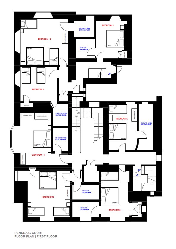 Double bedroom with ensuite Bedroom 10 self catering accommodation Pencraig Court Nr. Monmouth www.bhhl.co.uk Bedroom 10 Second Floor Sleeps 3