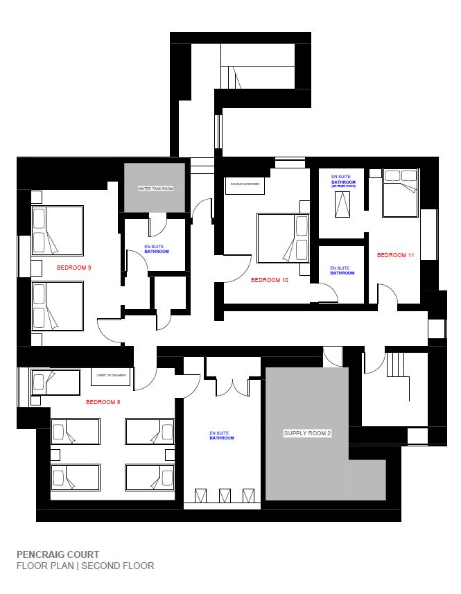 Beamed bedrooms with ensuite Pencraig Court Bedroom 11 Herefordshire www.bhhl.co.uk Bedroom 11 Second Floor Sleeps 2