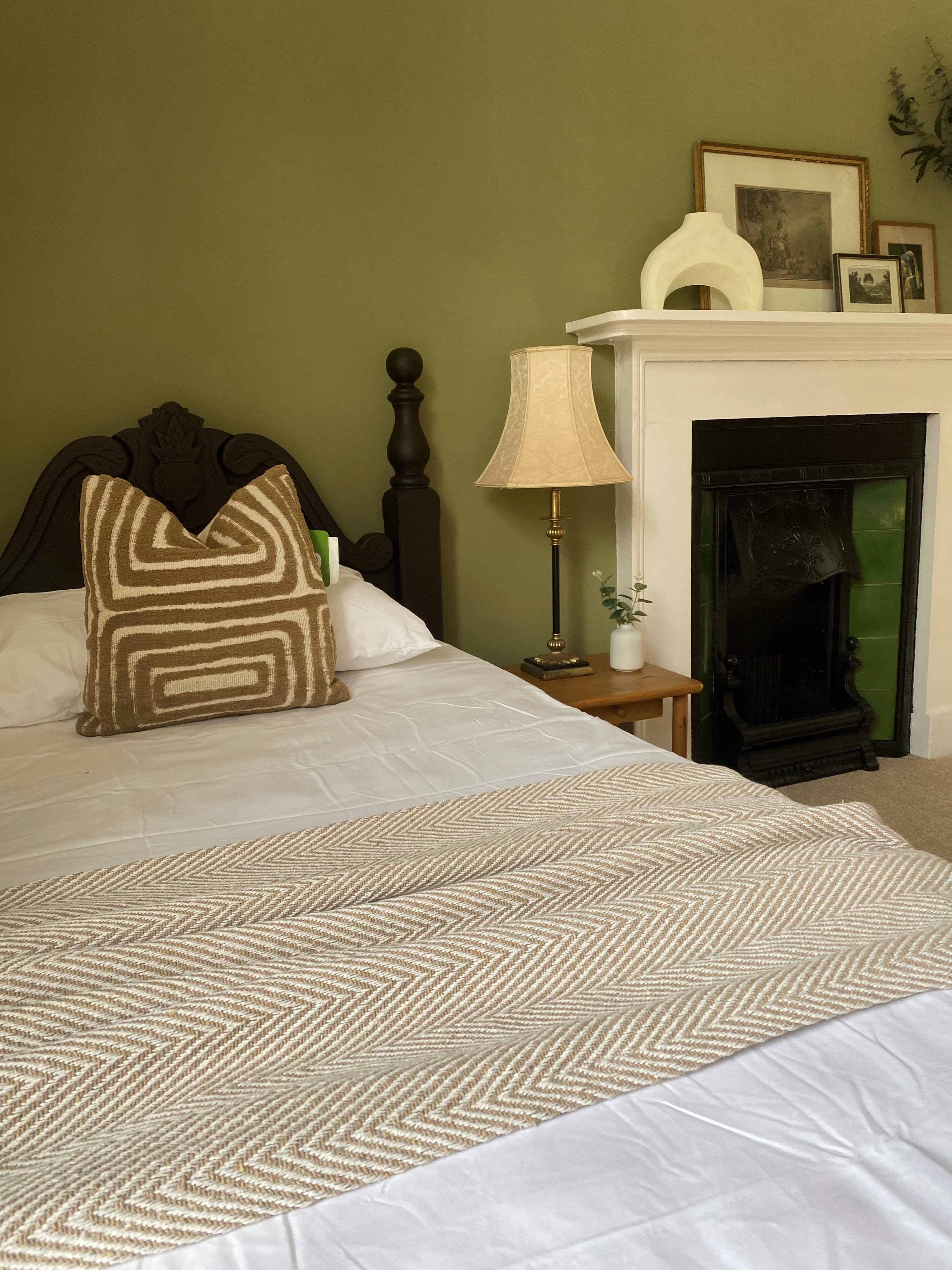 Traditional fire place relaxing greens in Bedroom 5 guest accommodation Pencraig Court Wye Valley www.bhhl.co.uk -